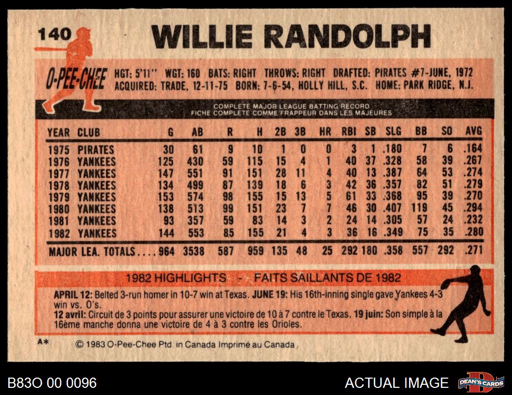 1983 O-Pee-Chee #140 Willie Randolph 8 - NM/MT