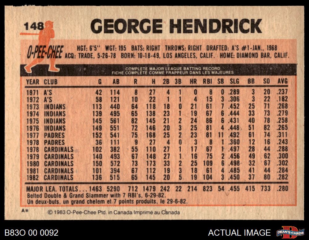 1983 O-Pee-Chee #148 George Hendrick 8 - NM/MT