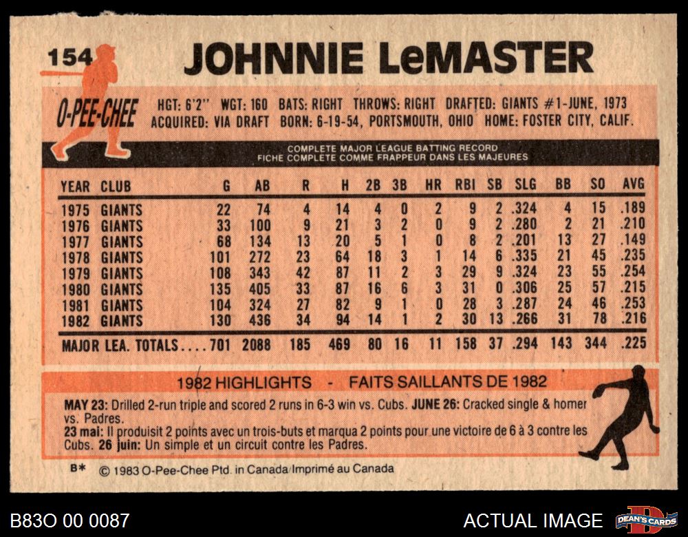 1983 O-Pee-Chee #154 Johnnie LeMaster