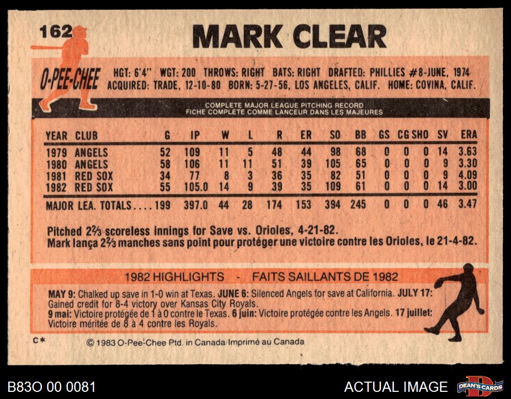 1983 O-Pee-Chee #162 Mark Clear 8 - NM/MT