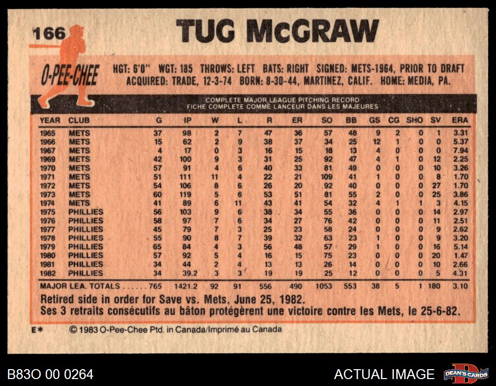 1983 O-Pee-Chee #166 Tug McGraw 8 - NM/MT