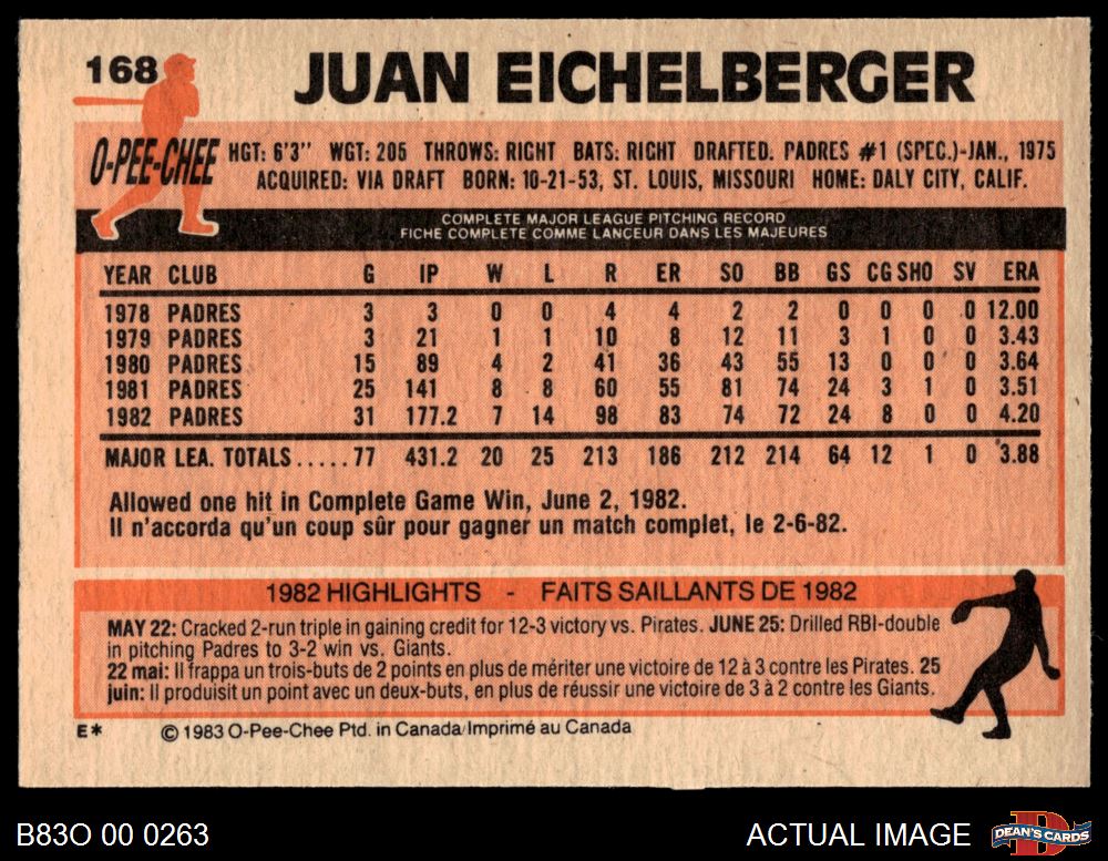 1983 O-Pee-Chee #168 Juan Eichelberger