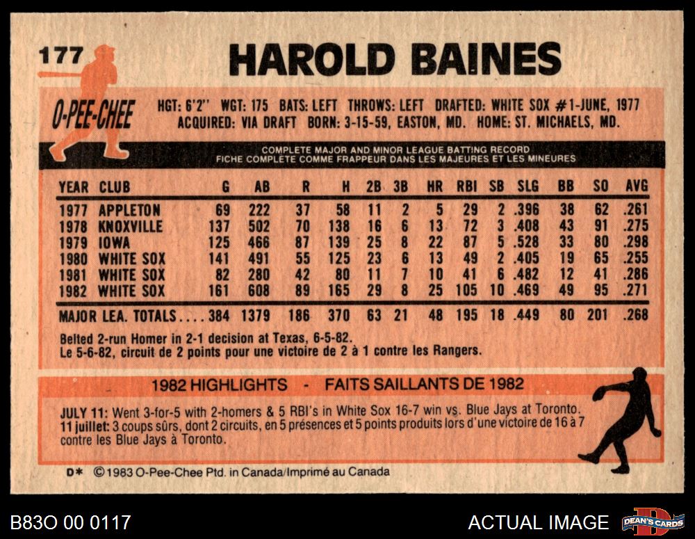 1983 O-Pee-Chee #177 Harold Baines 8 - NM/MT