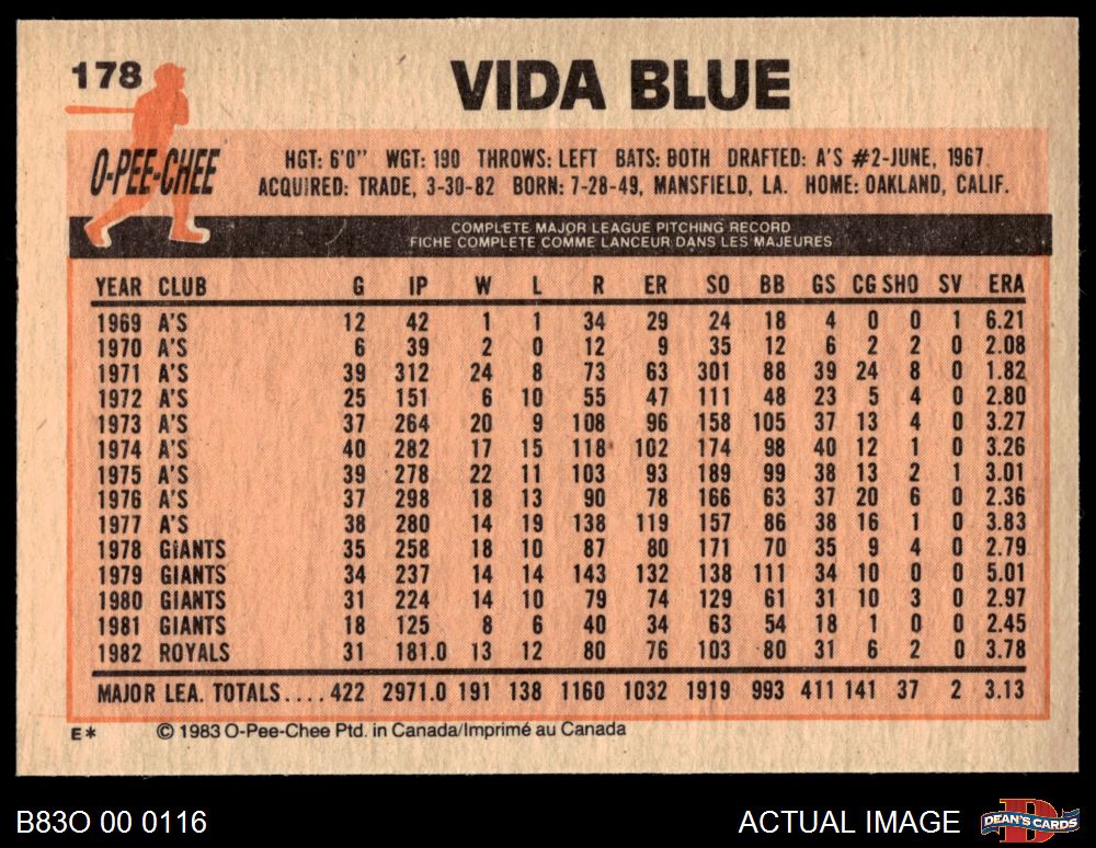 1983 O-Pee-Chee #178 Vida Blue