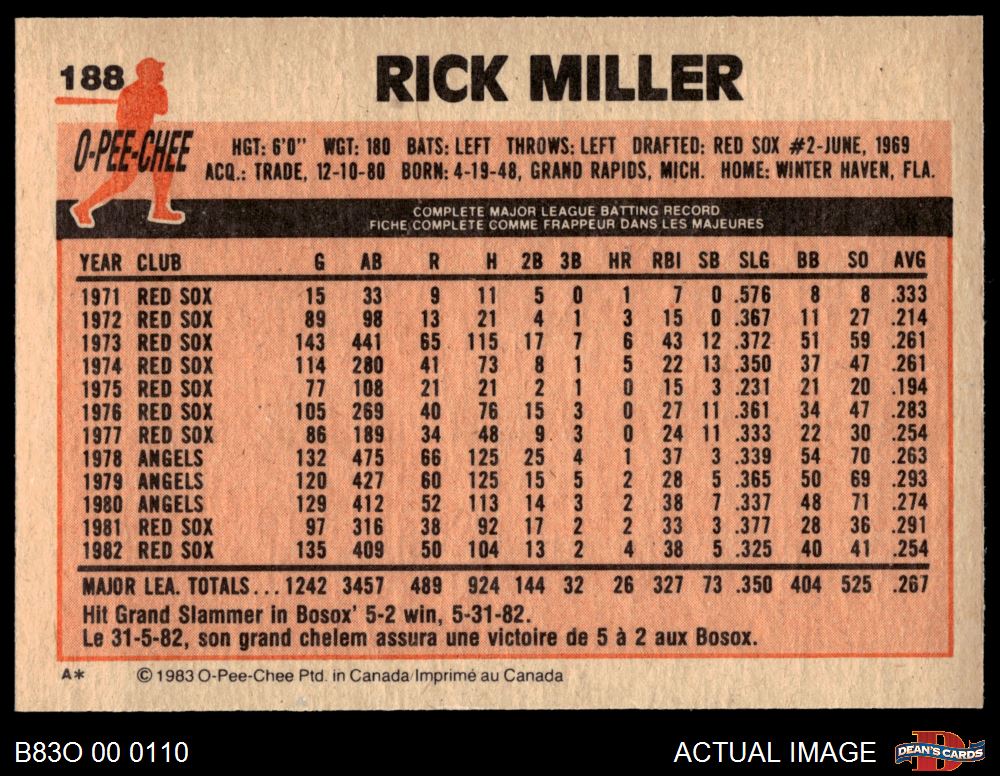1983 O-Pee-Chee #188 Rick Miller 8 - NM/MT