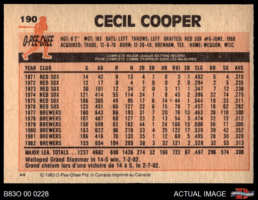 1983 O-Pee-Chee #190 Cecil Cooper 8 - NM/MT