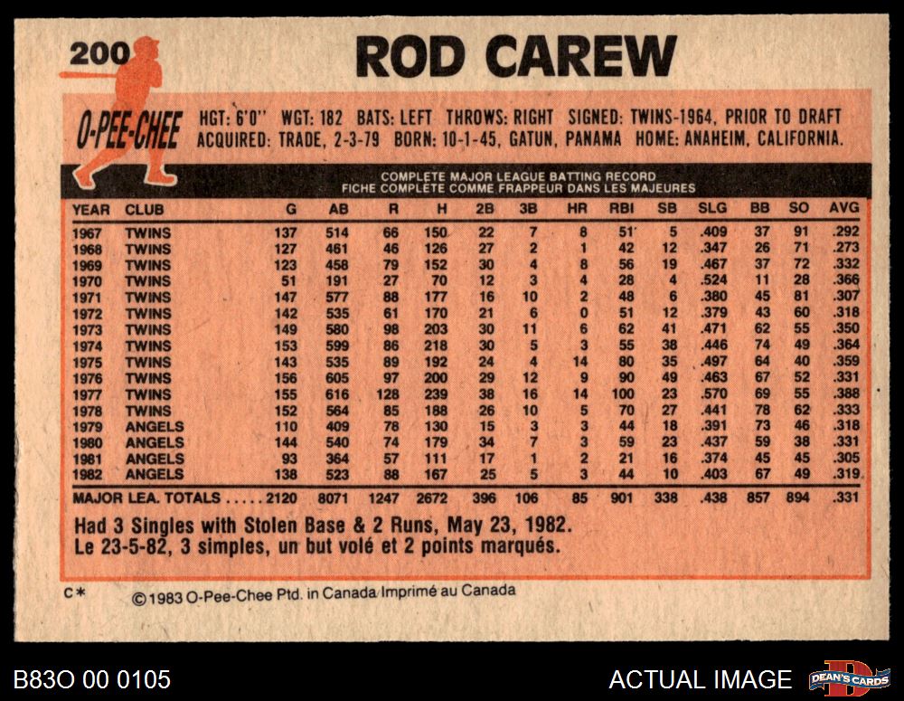 1983 O-Pee-Chee #200 Rod Carew 8 - NM/MT