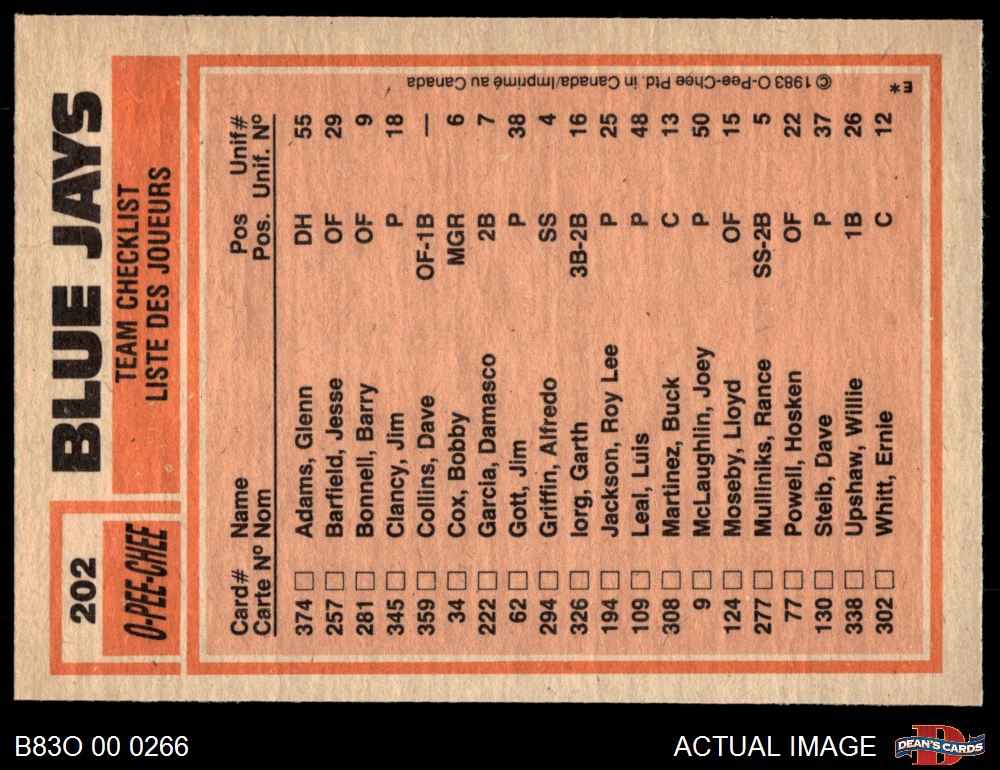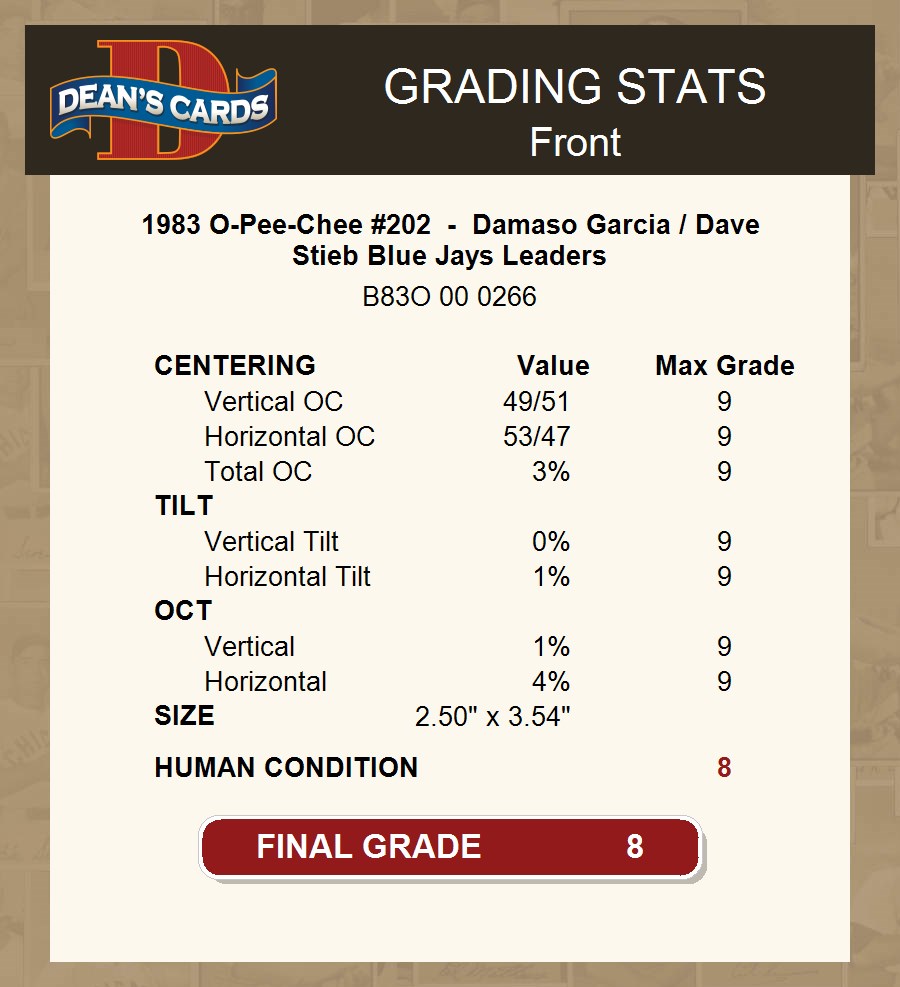 1983 O-Pee-Chee #202 - Damaso Garcia / Dave Stieb Blue Jays Leaders 8 - NM/MT