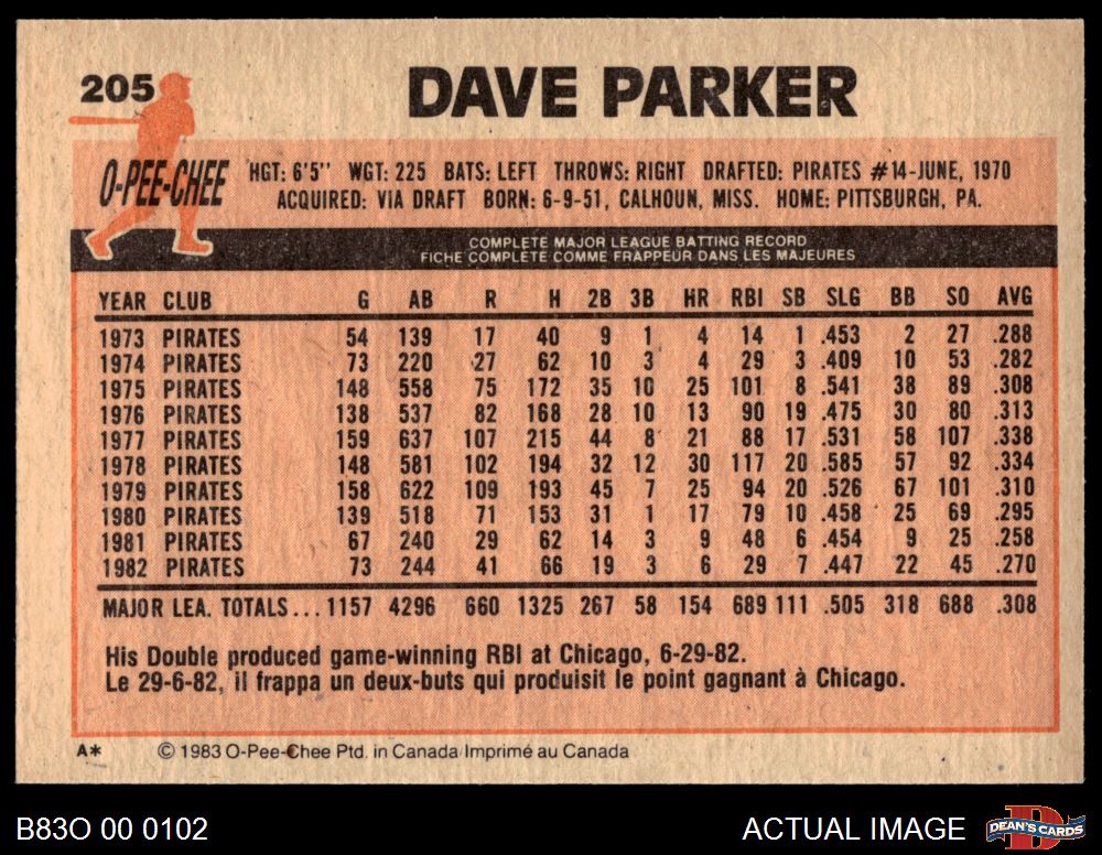 1983 O-Pee-Chee #205 Dave Parker 8 - NM/MT