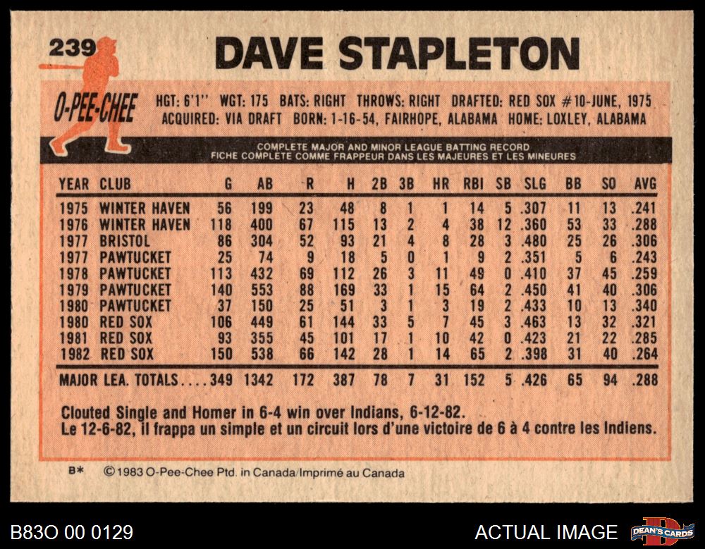 1983 O-Pee-Chee #239 Dave Stapleton 8 - NM/MT