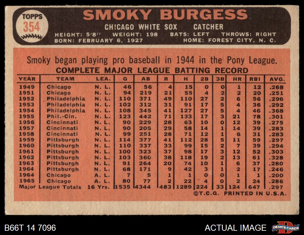 1966 Topps #354 Smoky Burgess 4 - VG/EX