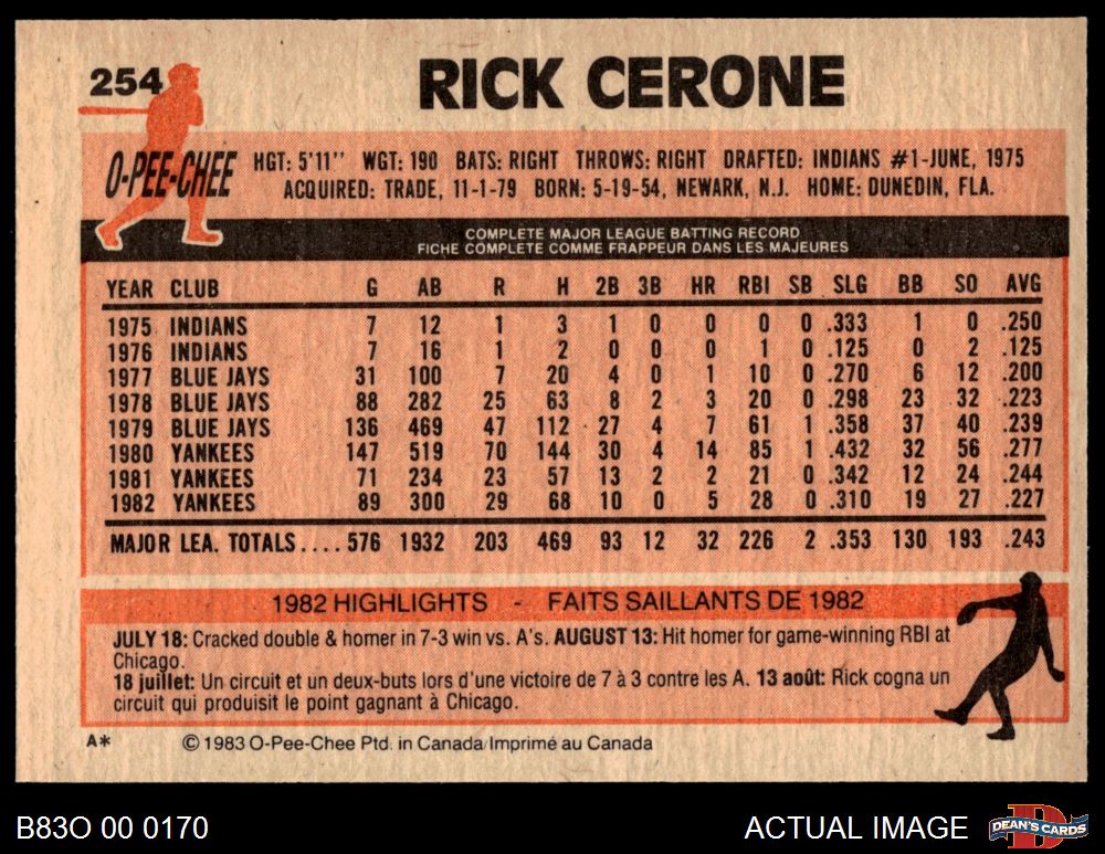 1983 O-Pee-Chee #254 Rick Cerone 8 - NM/MT
