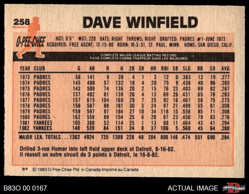 1983 O-Pee-Chee #258 Dave Winfield