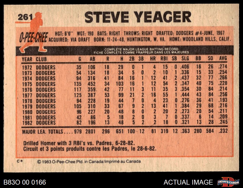 1983 O-Pee-Chee #261 Steve Yeager
