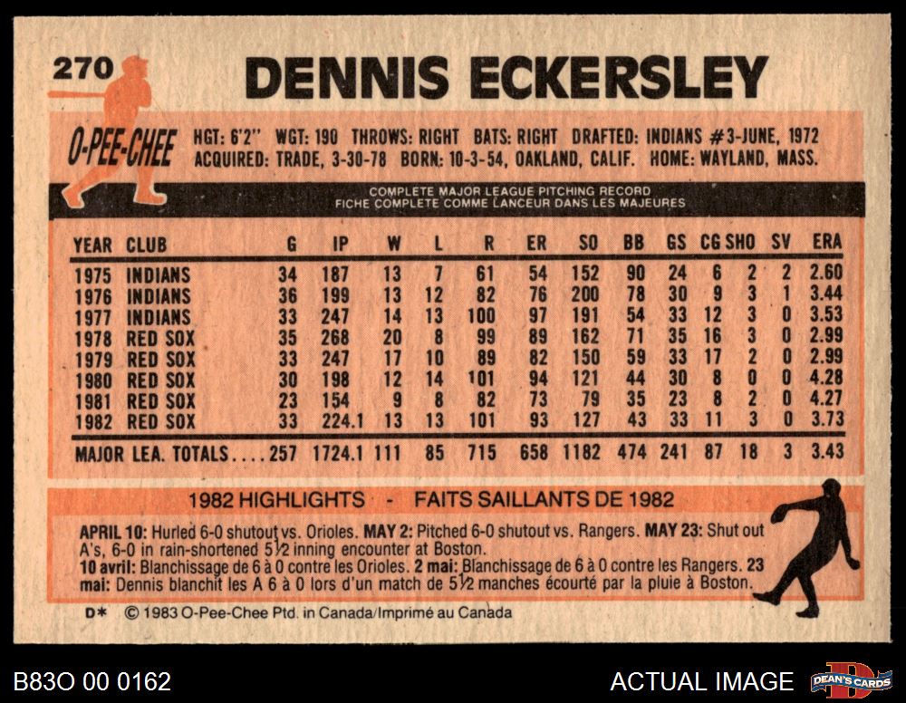 1983 O-Pee-Chee #270 Dennis Eckersley 8 - NM/MT