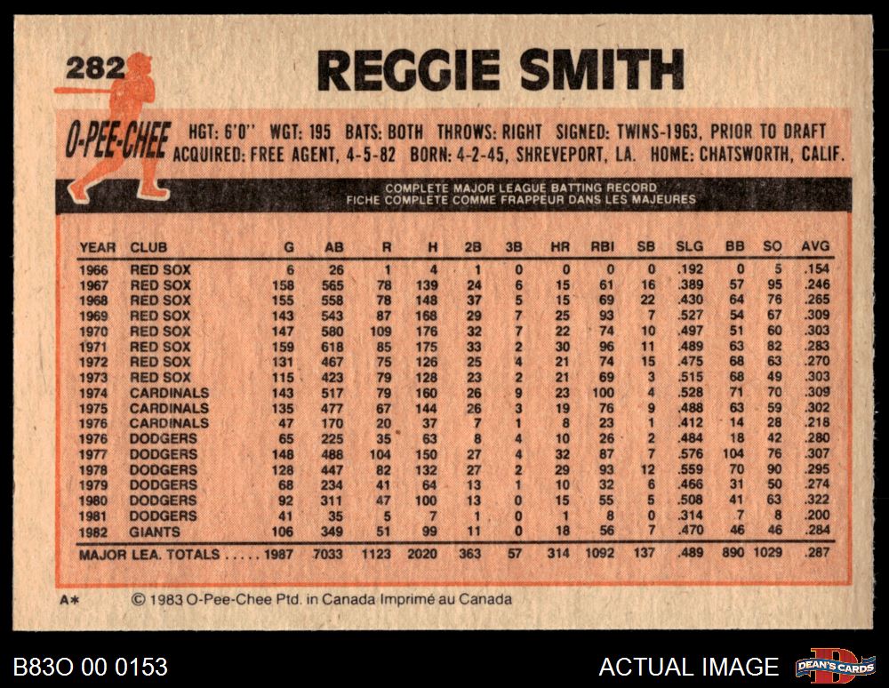 1983 O-Pee-Chee #282 Reggie Smith 8 - NM/MT