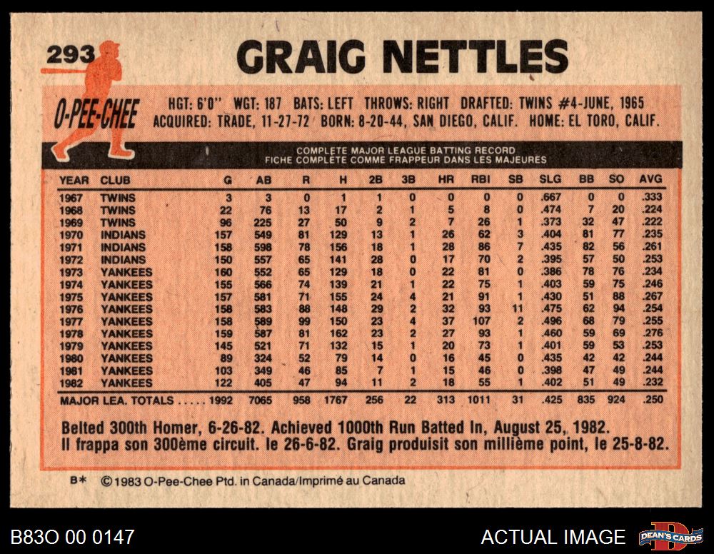 1983 O-Pee-Chee #293 Graig Nettles 8 - NM/MT