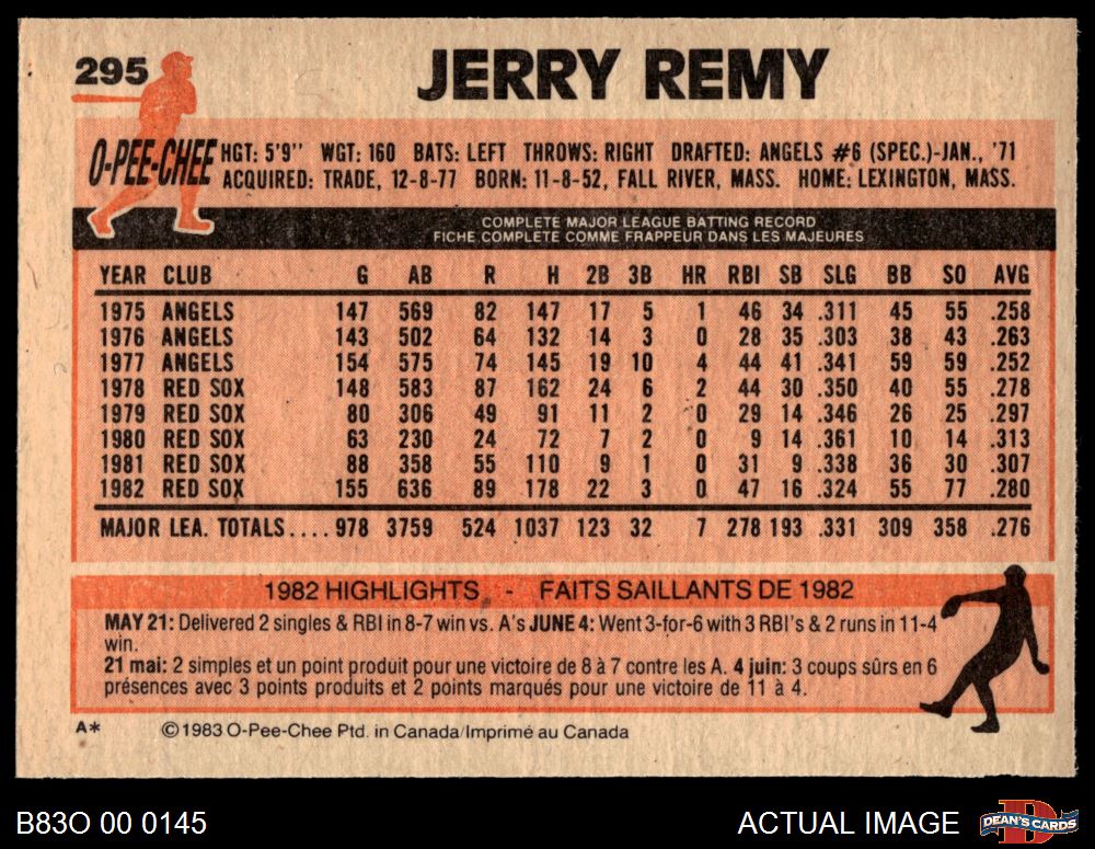 1983 O-Pee-Chee #295 Jerry Remy 8 - NM/MT