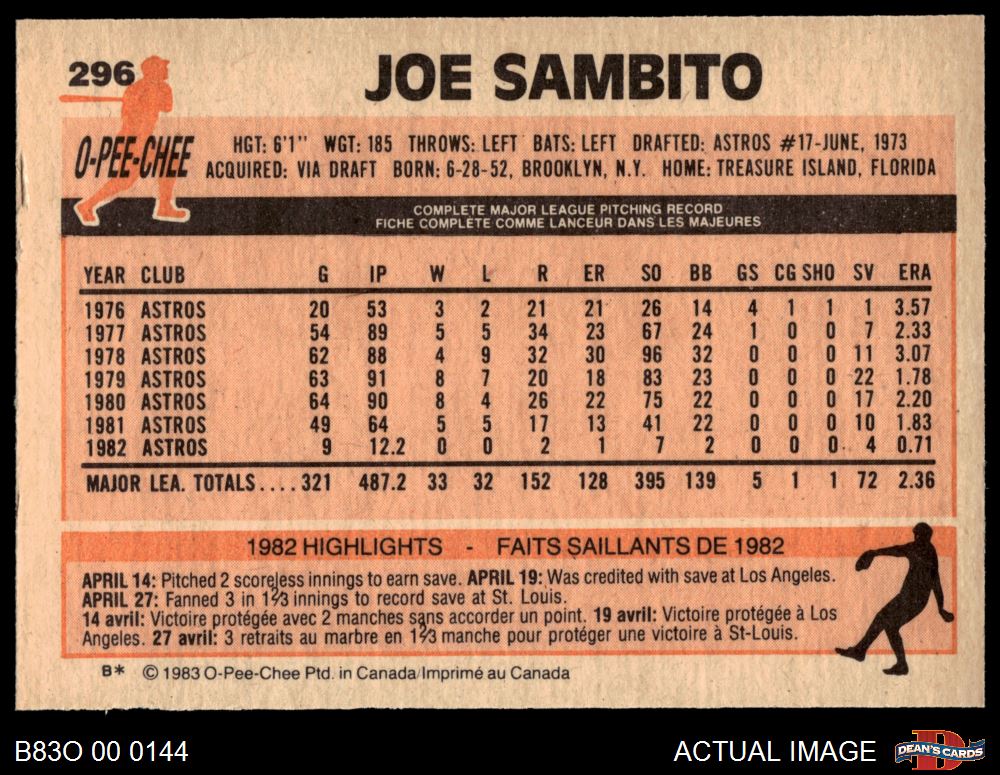 1983 O-Pee-Chee #296 Joe Sambito 8 - NM/MT