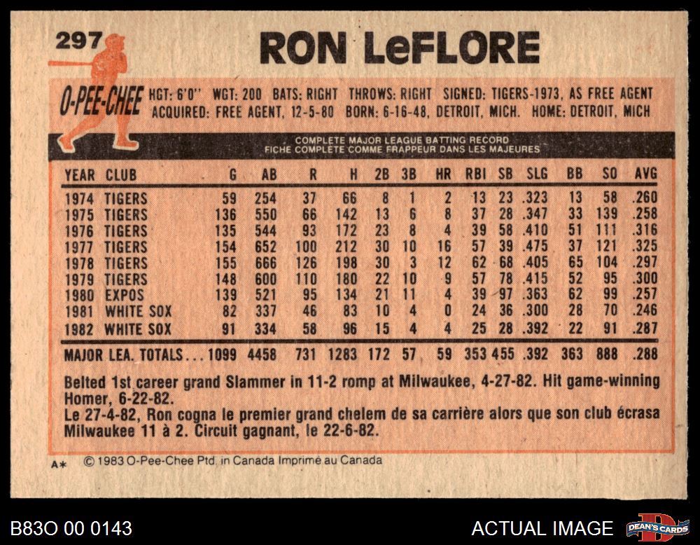 1983 O-Pee-Chee #297 Ron LeFlore 8 - NM/MT