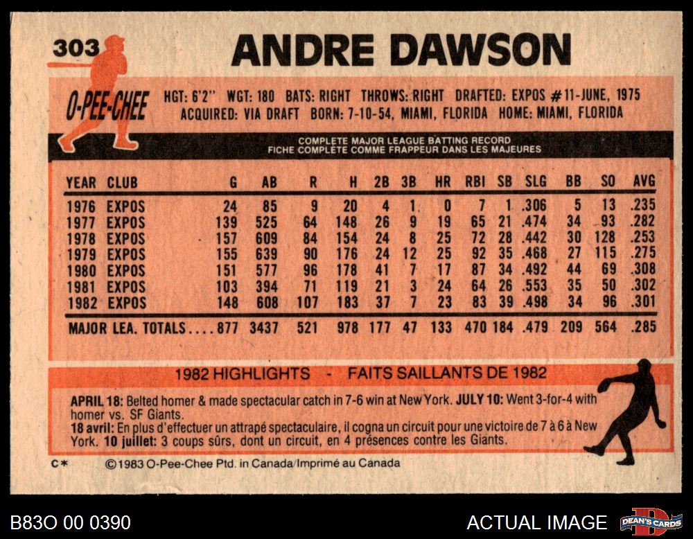 1983 O-Pee-Chee #303 Andre Dawson 4 - VG/EX