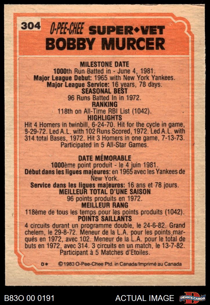 1983 O-Pee-Chee #304 Super Veteran