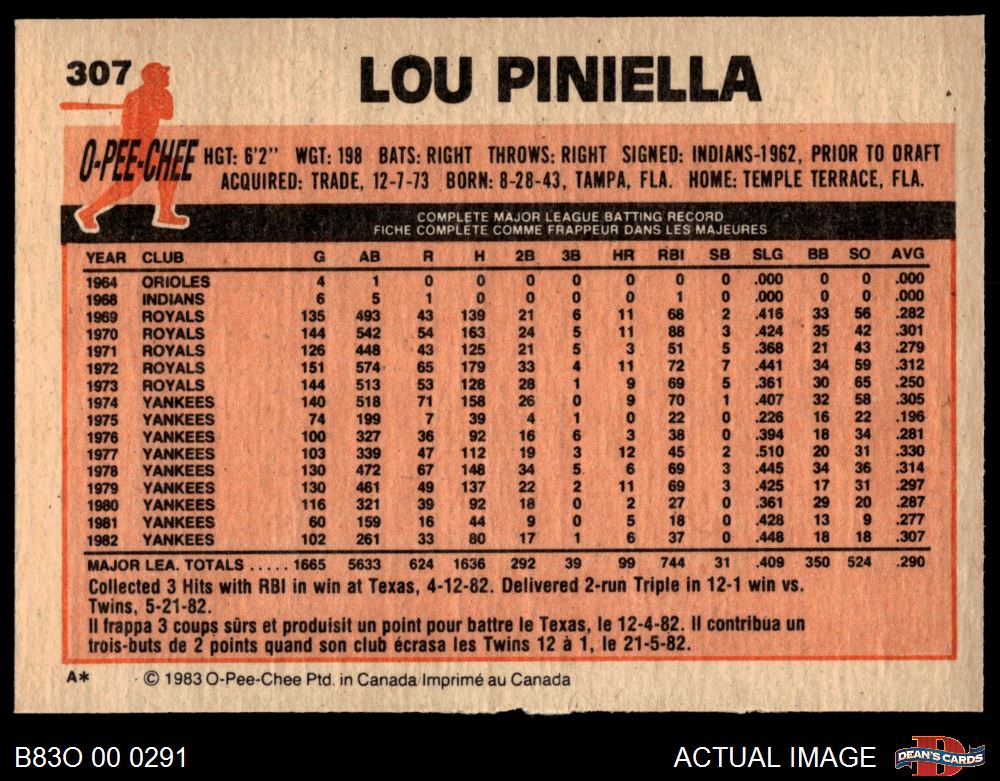 1983 O-Pee-Chee #307 Lou Piniella