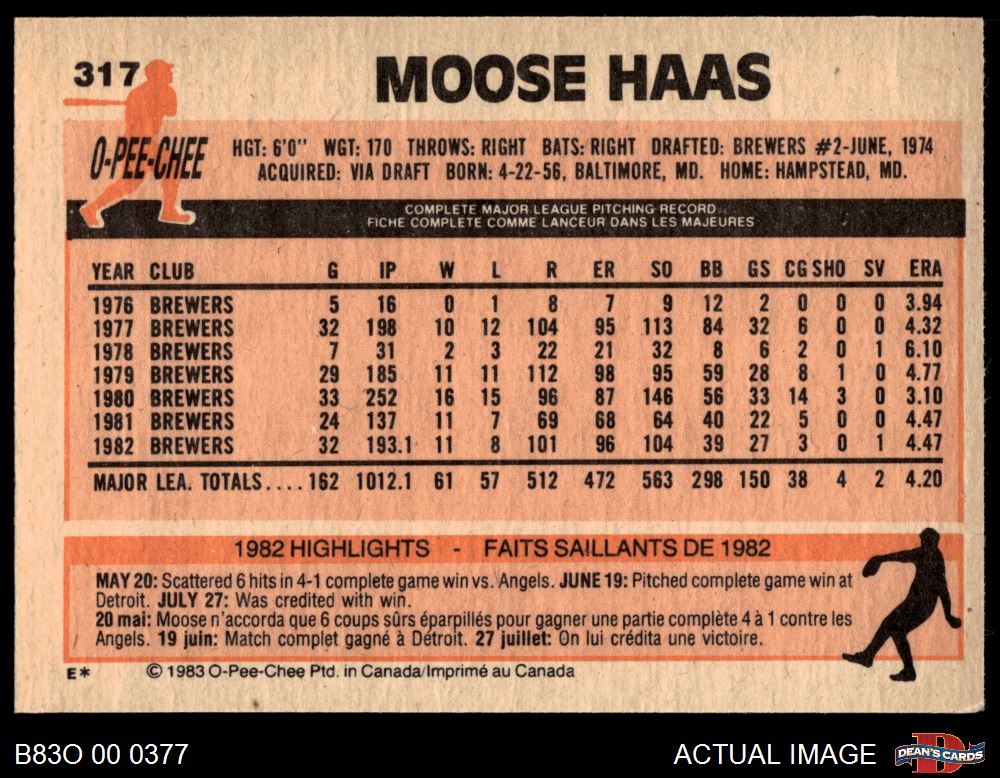 1983 O-Pee-Chee #317 Moose Haas