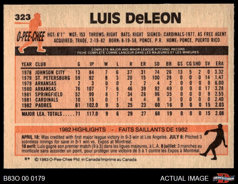 1983 O-Pee-Chee #323 Luis DeLeon 8 - NM/MT