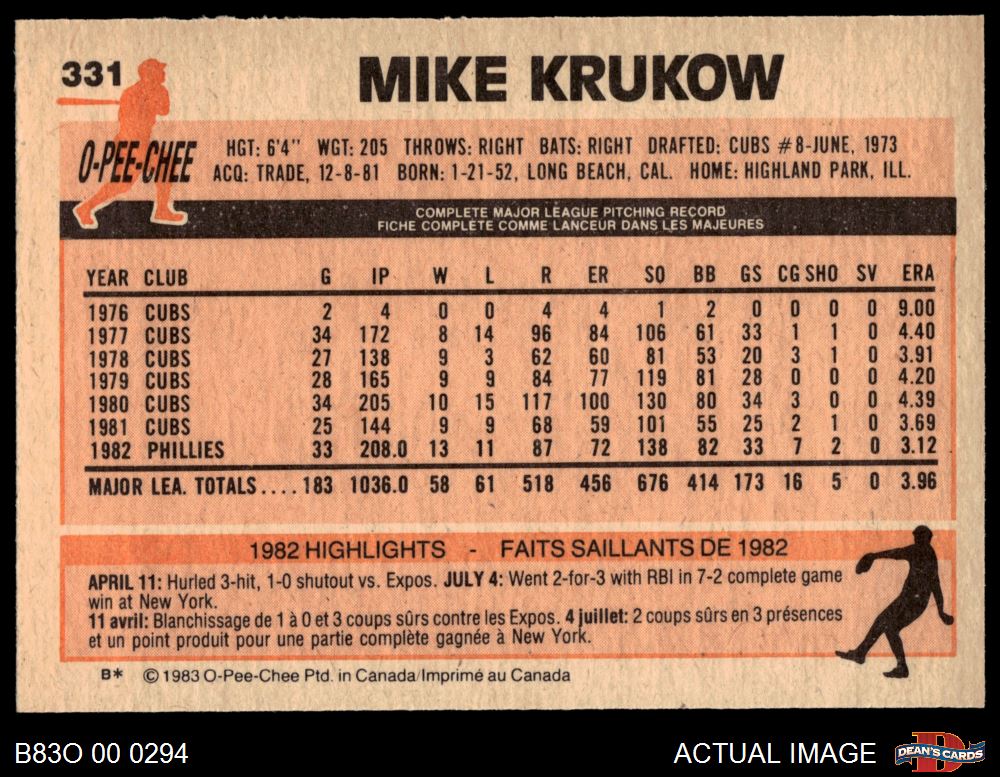 1983 O-Pee-Chee #331 Mike Krukow 8 - NM/MT