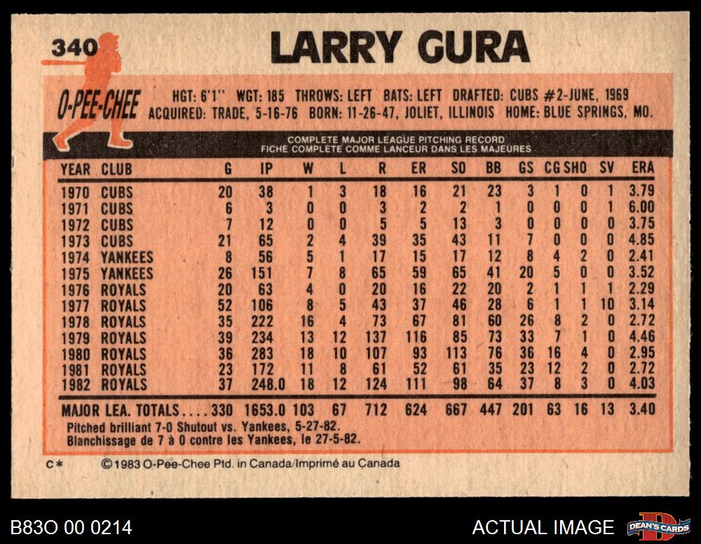 1983 O-Pee-Chee #340 Larry Gura 8 - NM/MT