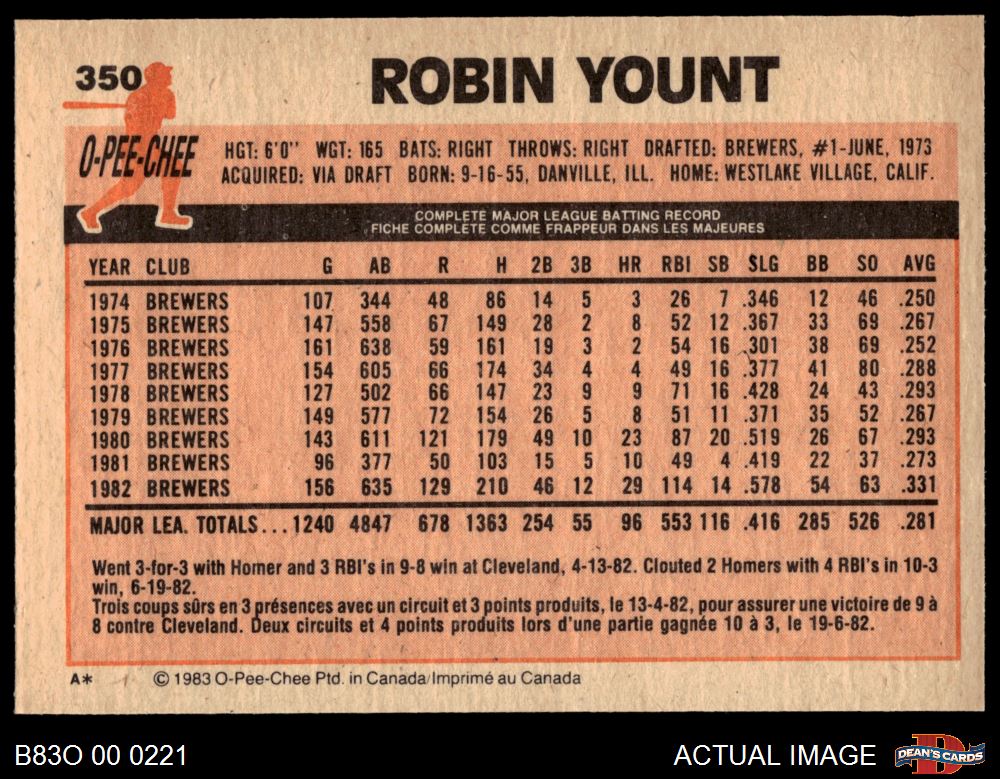 1983 O-Pee-Chee #350 Robin Yount 8 - NM/MT