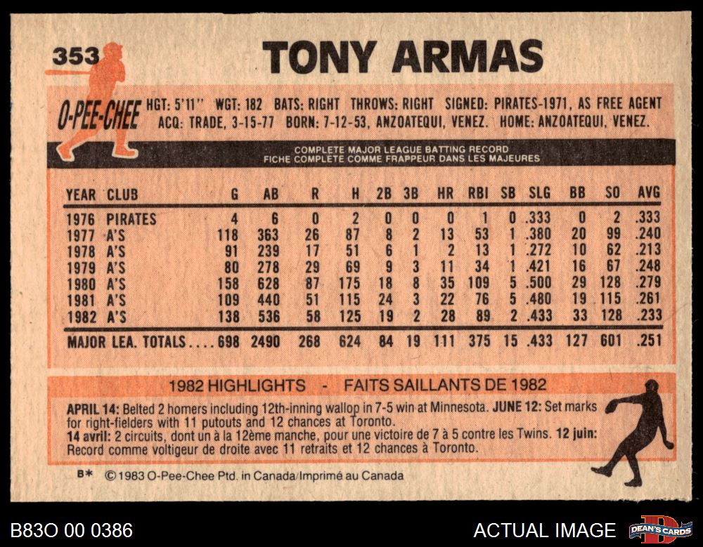 1983 O-Pee-Chee #353 Tony Armas 8 - NM/MT