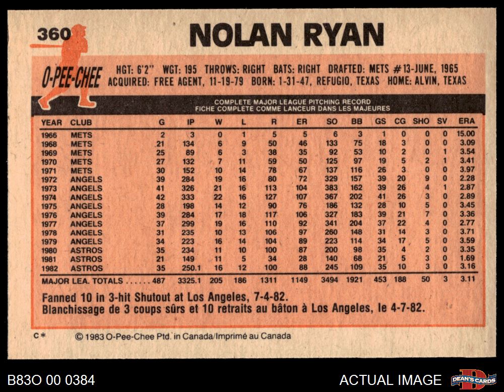 1983 O-Pee-Chee #360 Nolan Ryan 8 - NM/MT