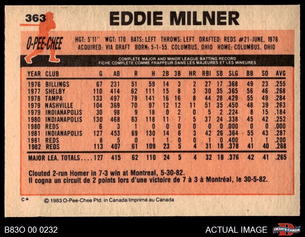1983 O-Pee-Chee #363 Eddie Milner 8 - NM/MT