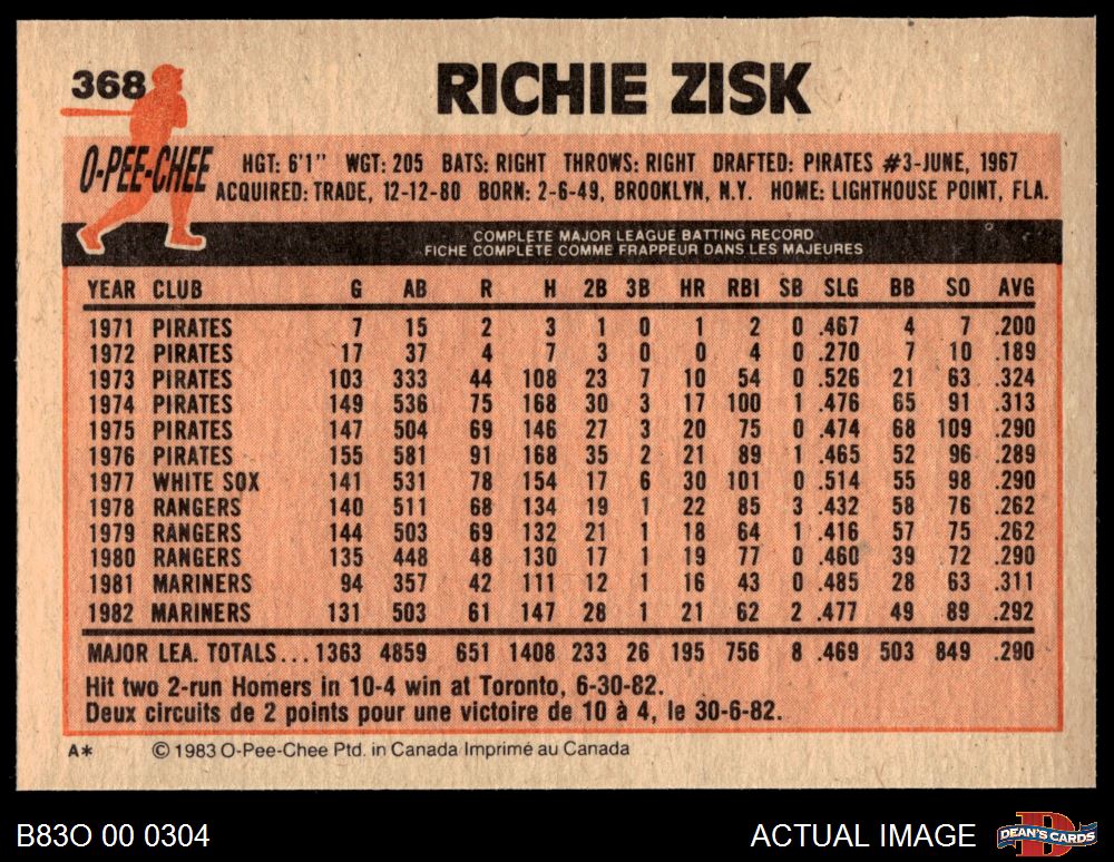 1983 O-Pee-Chee #368 Richie Zisk 8 - NM/MT