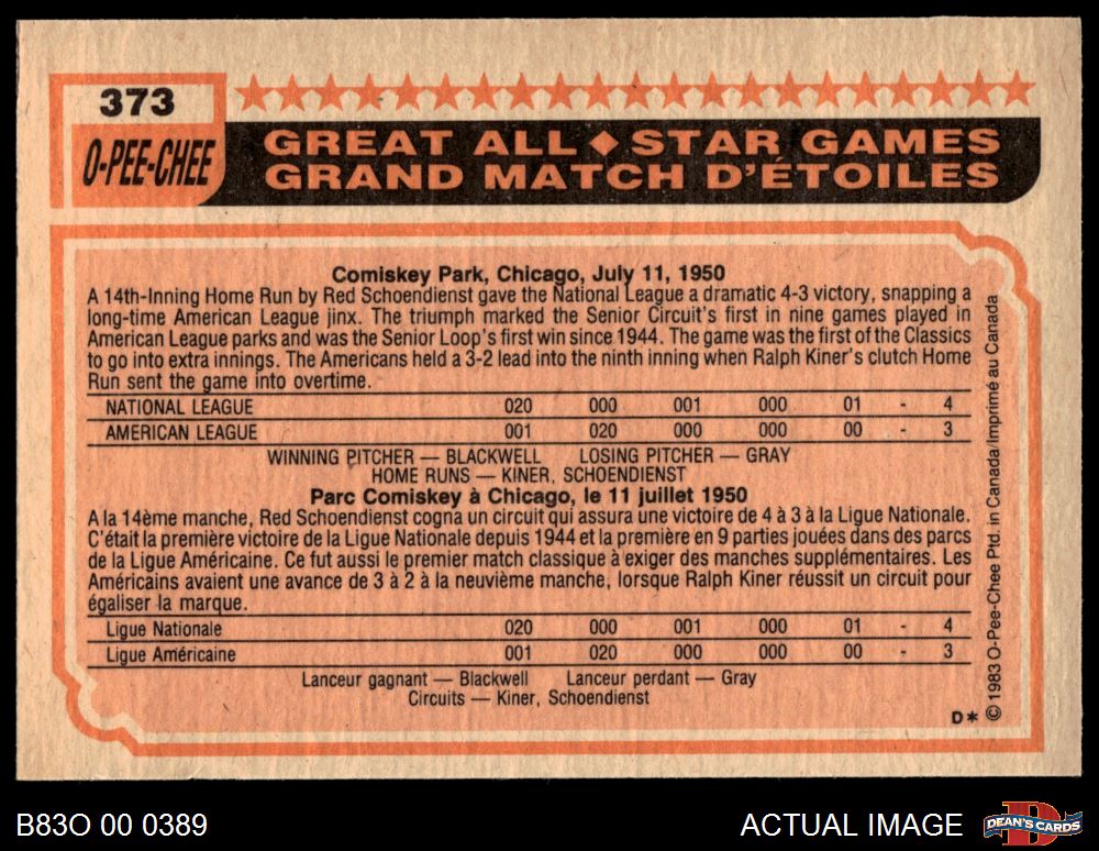 1983 O-Pee-Chee #373 - Pete Rose All-Star 4 - VG/EX