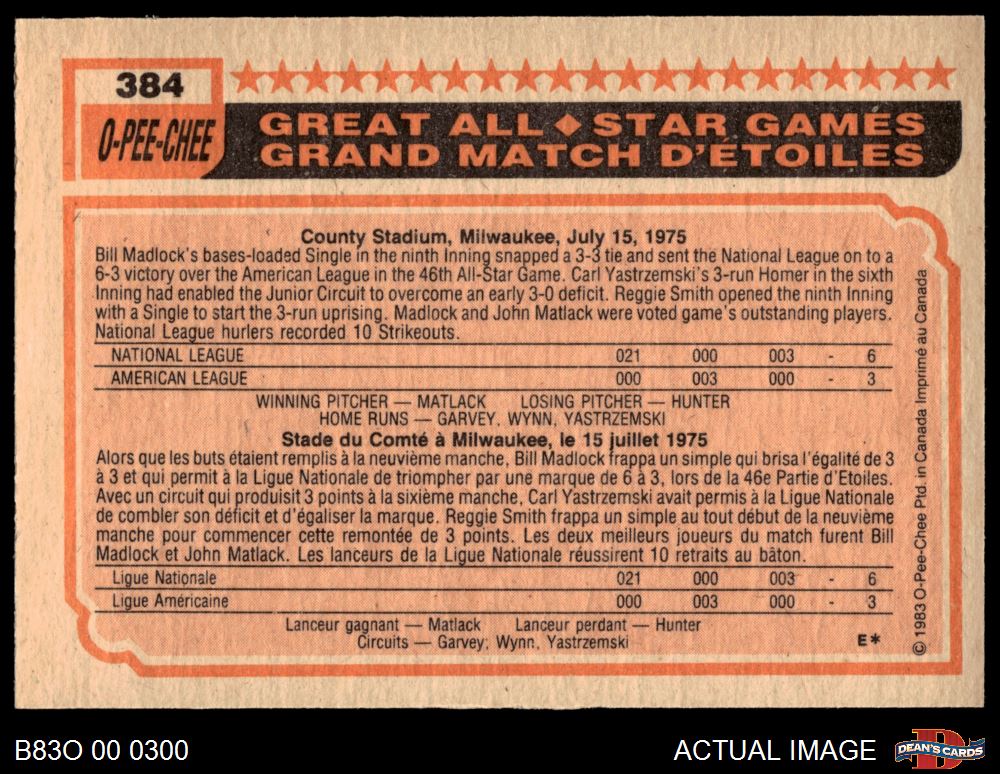 1983 O-Pee-Chee #384 All-Star