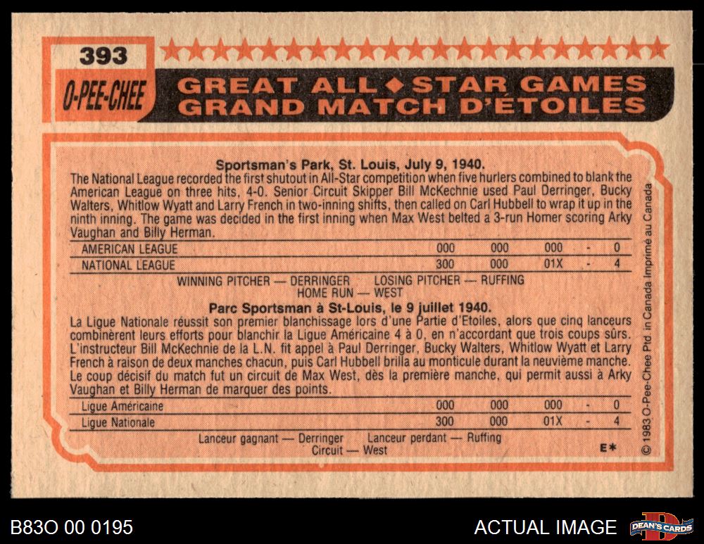 1983 O-Pee-Chee #393 - Carlton Fisk All-Star 8 - NM/MT