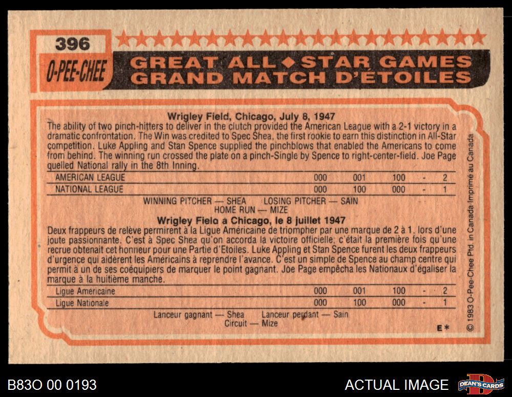1983 O-Pee-Chee #396 - Dan Quisenberry All-Star 8 - NM/MT