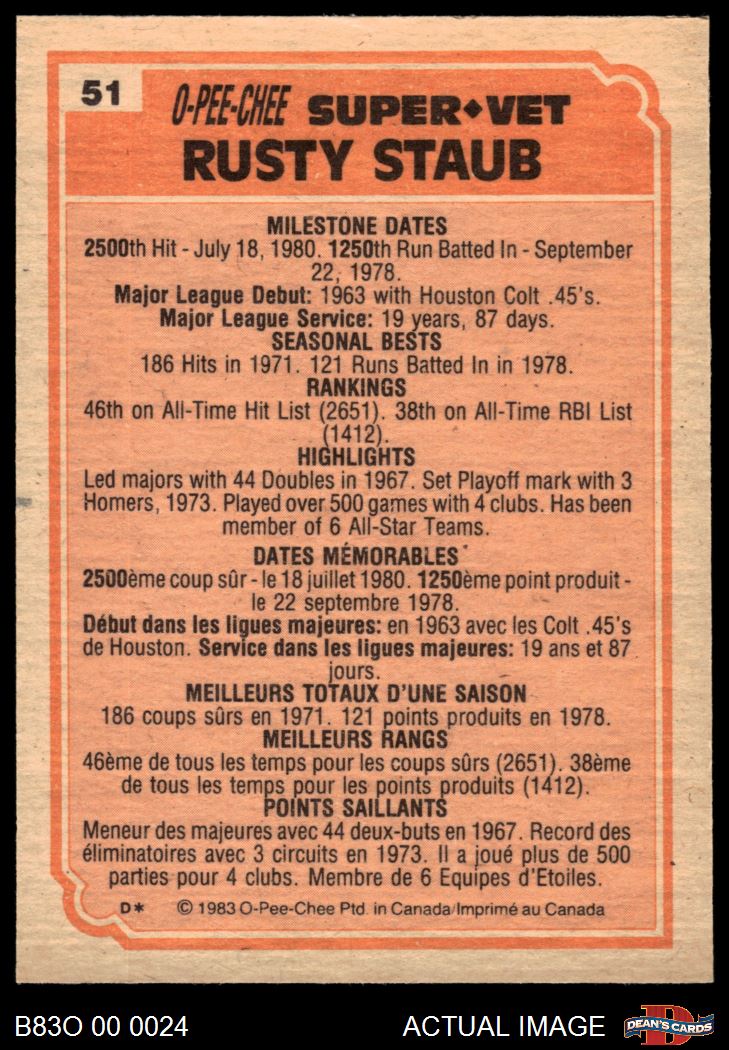 1983 O-Pee-Chee #51 Super Veteran