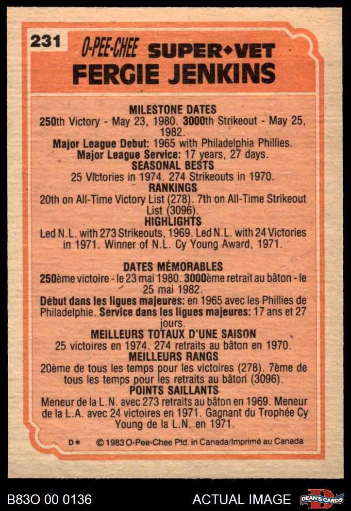 1983 O-Pee-Chee #231 - Fergie Jenkins Super Veteran 8 - NM/MT