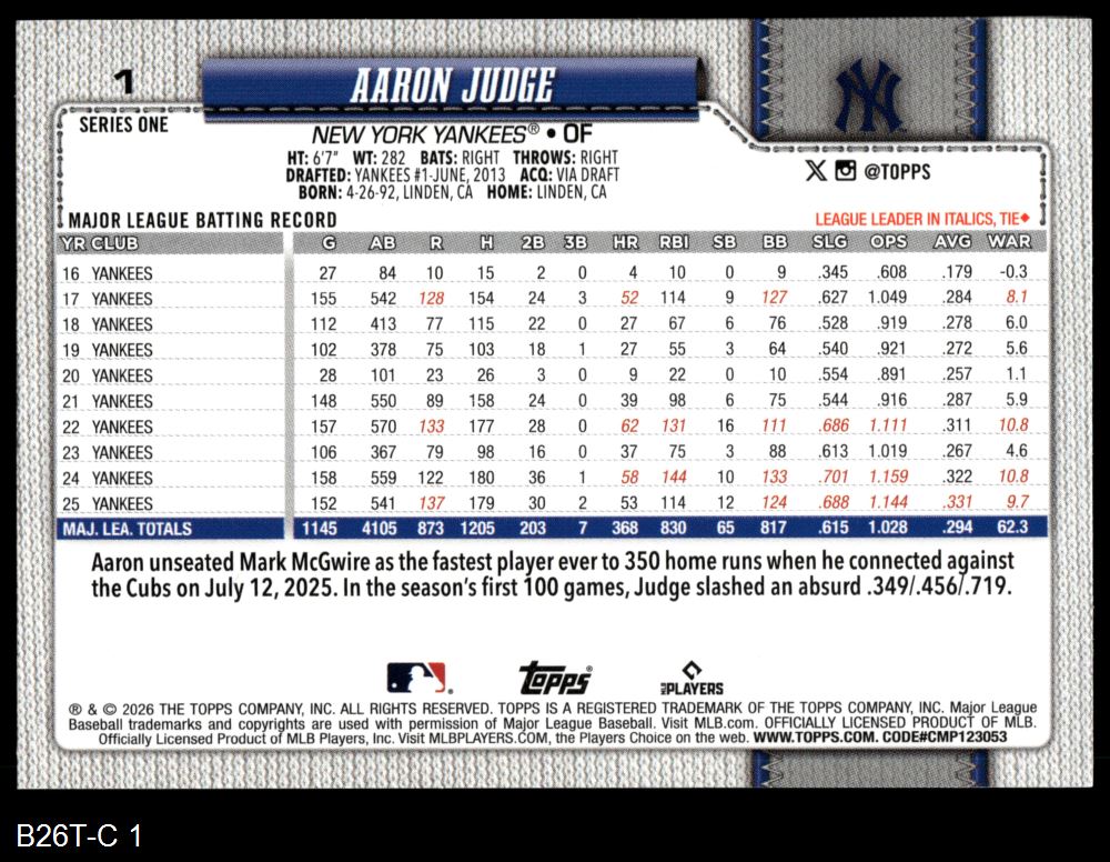 2026 Topps #1 Aaron Judge
