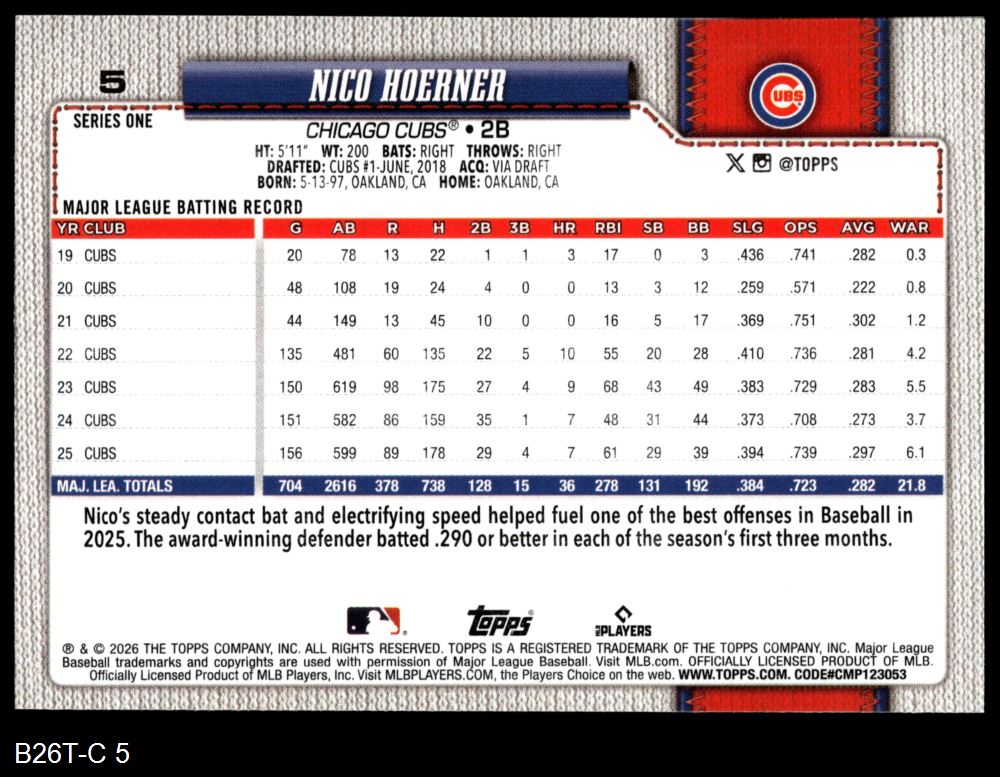 2026 Topps #5 Nico Hoerner 8 - NM/MT