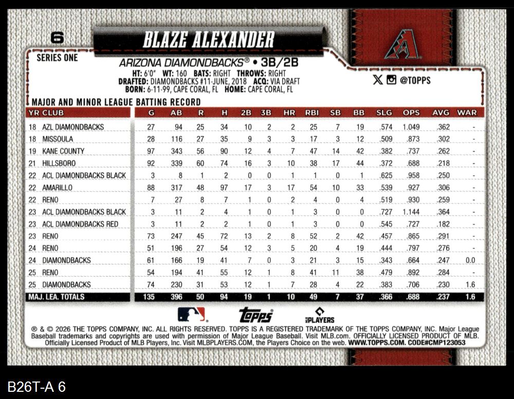 2026 Topps #6 Blaze Alexander 8 - NM/MT