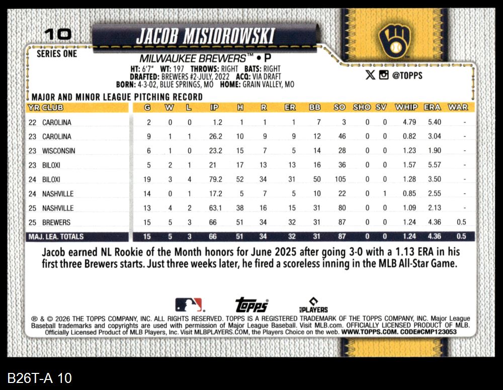 2026 Topps #10 Jacob Misiorowski