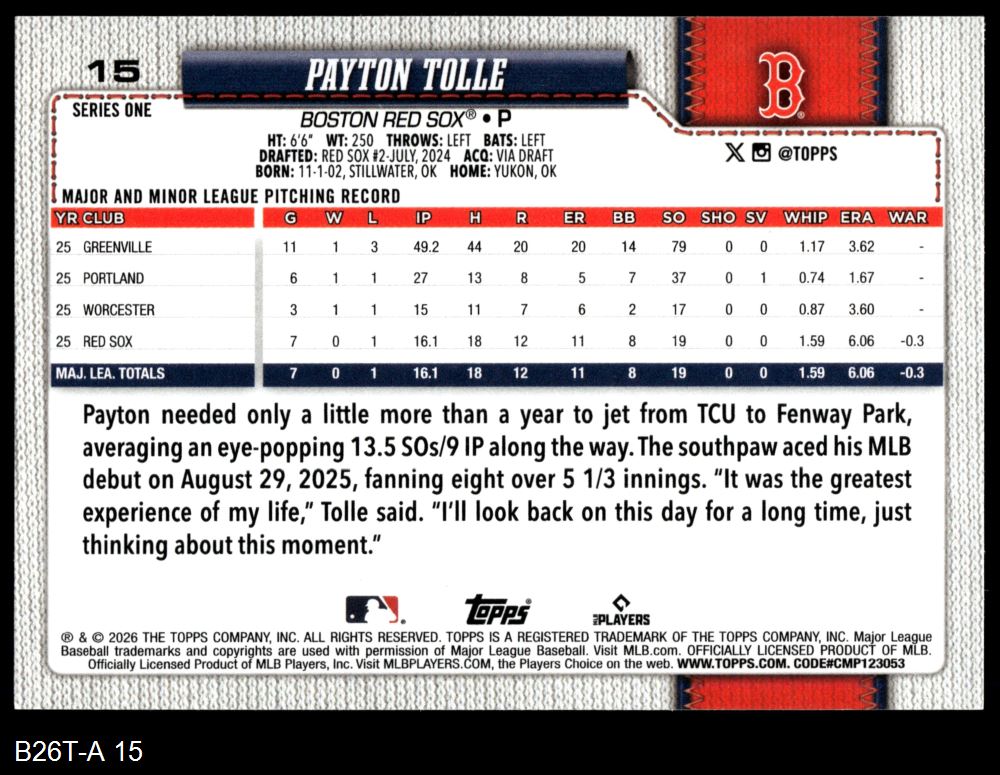 2026 Topps #15 Payton Tolle