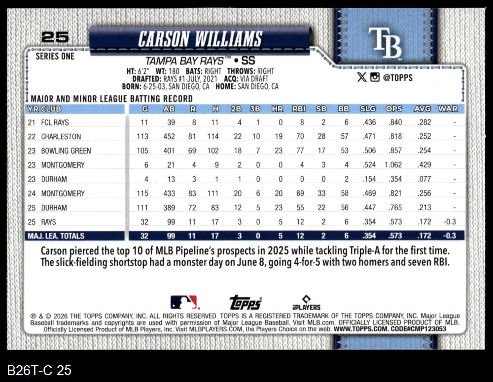 2026 Topps #25 Carson Williams 8 - NM/MT