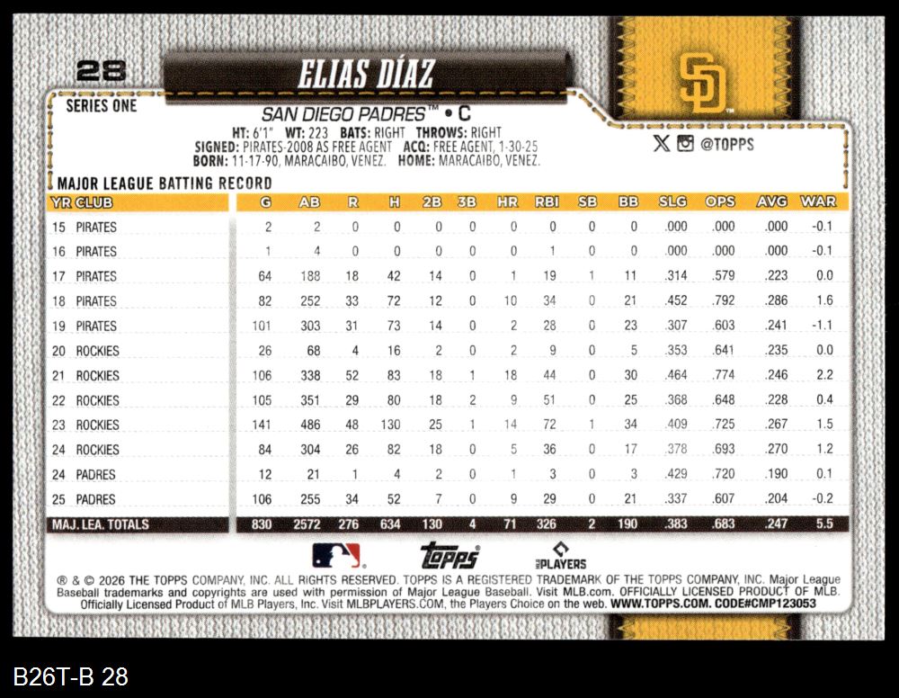 2026 Topps #28 Elias Diaz 8 - NM/MT