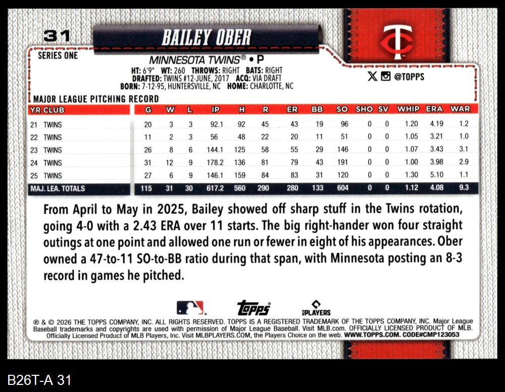 2026 Topps #31 Bailey Ober